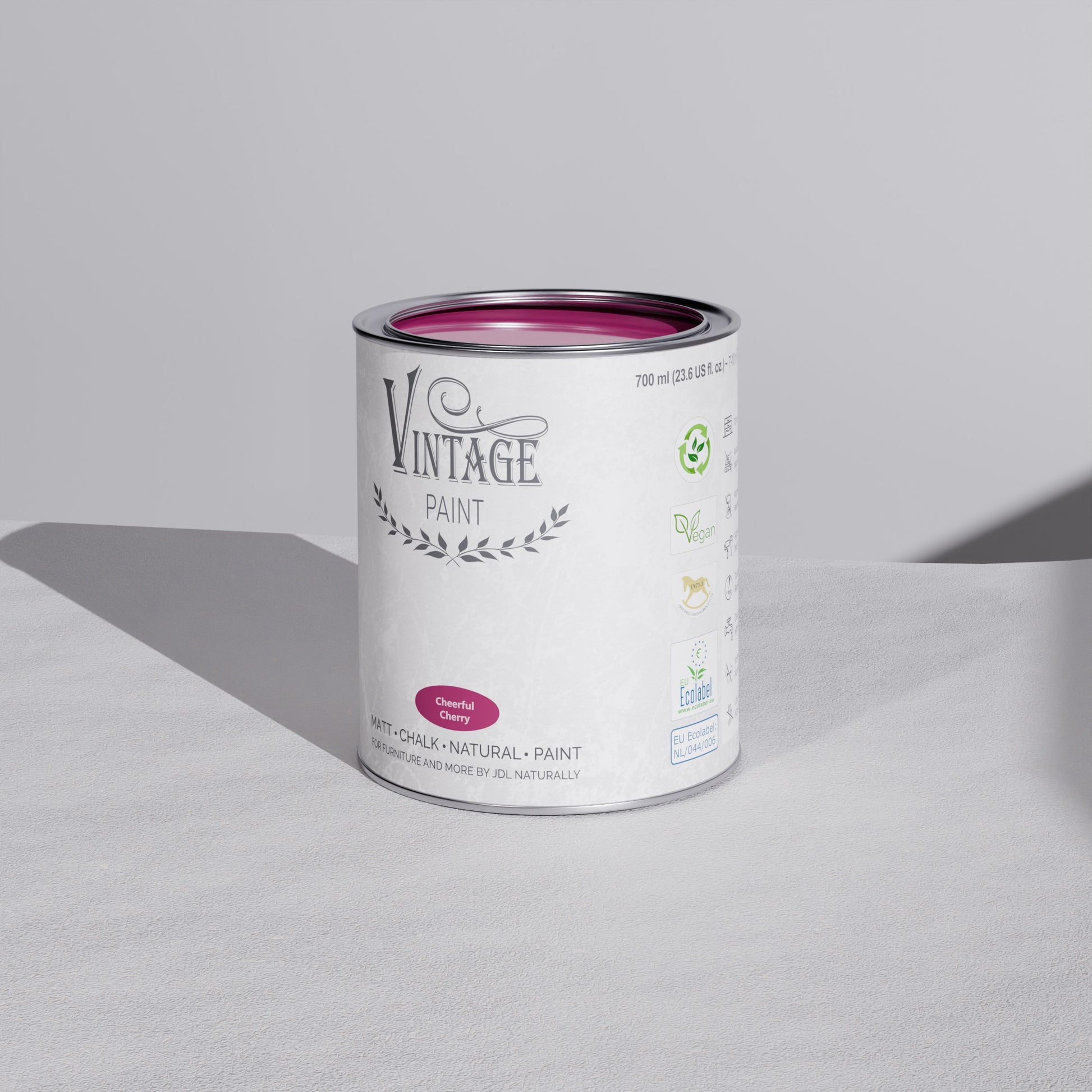 Vintage Paint is duurzame krijtverf die alles moeiteloos transformeert, van meubels tot muren. Gemaakt op waterbasis, geurarm en volledig ecologisch. De verf hecht direct op vrijwel elk oppervlak (hout, metaal, glas, kunststof, textiel, …) zonder primer of schuurpapier.