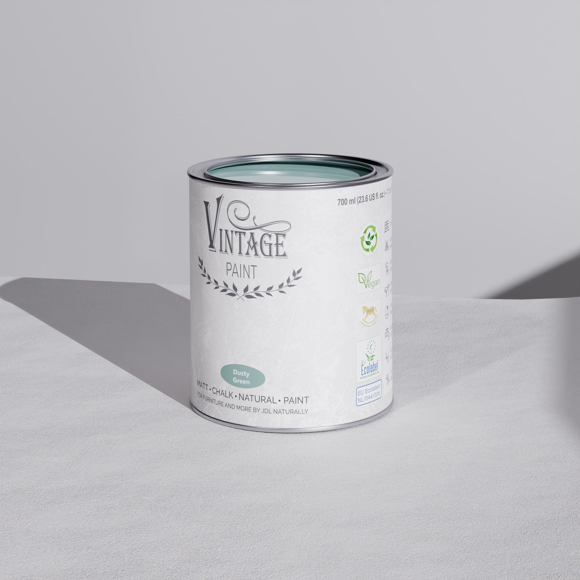 Vintage Paint is duurzame krijtverf die alles moeiteloos transformeert, van meubels tot muren. Gemaakt op waterbasis, geurarm en volledig ecologisch. De verf hecht direct op vrijwel elk oppervlak (hout, metaal, glas, kunststof, textiel, …) zonder primer of schuurpapier.