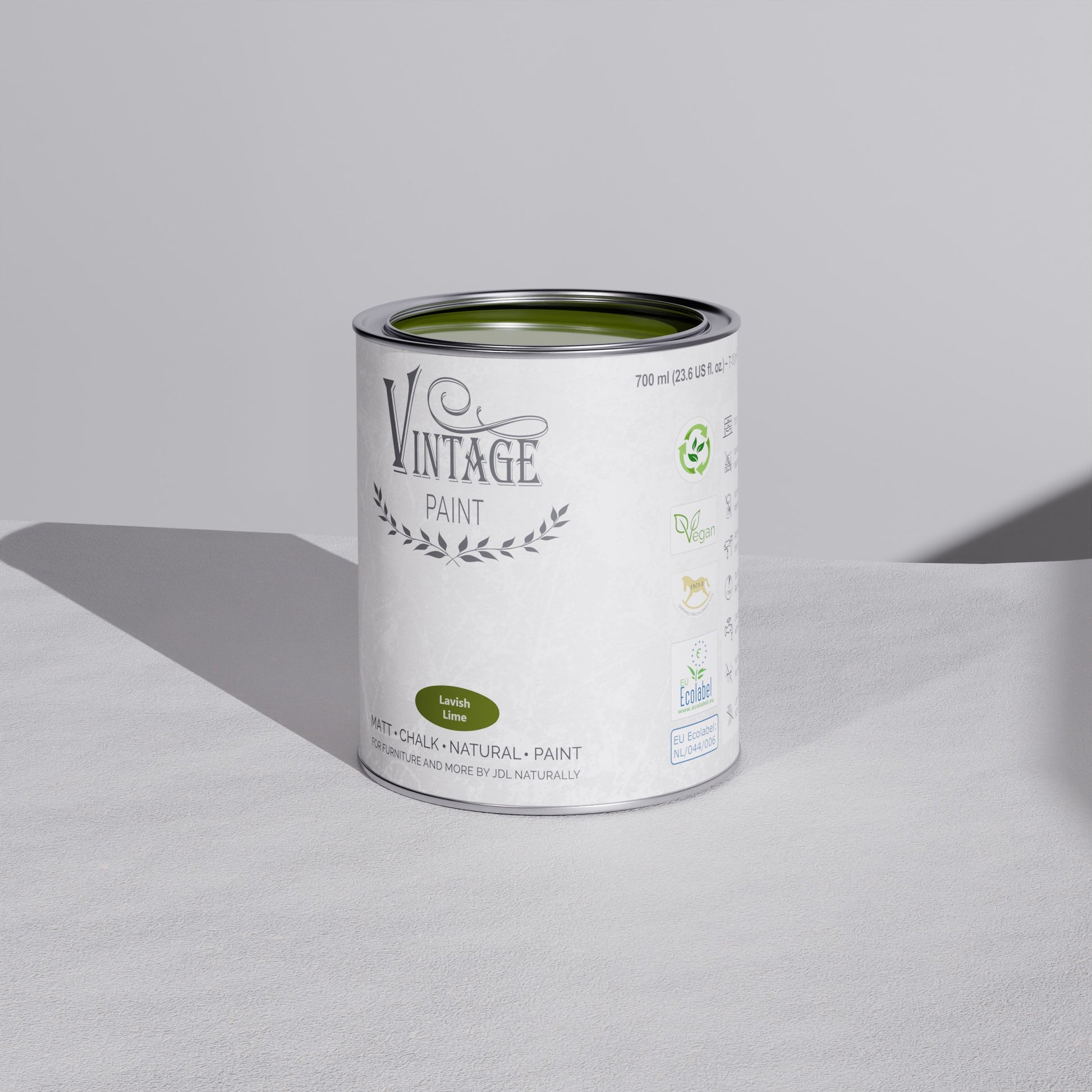 Vintage Paint is duurzame krijtverf die alles moeiteloos transformeert, van meubels tot muren. Gemaakt op waterbasis, geurarm en volledig ecologisch. De verf hecht direct op vrijwel elk oppervlak (hout, metaal, glas, kunststof, textiel, …) zonder primer of schuurpapier.